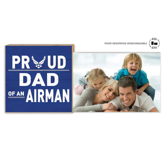 Put your favorite Airman on display with this unique floating frame! The block has a slot cutout that allows you to change the orientation of your photo or easily swap pictures. Display the block on its own if you're still deciding which photo to use.
