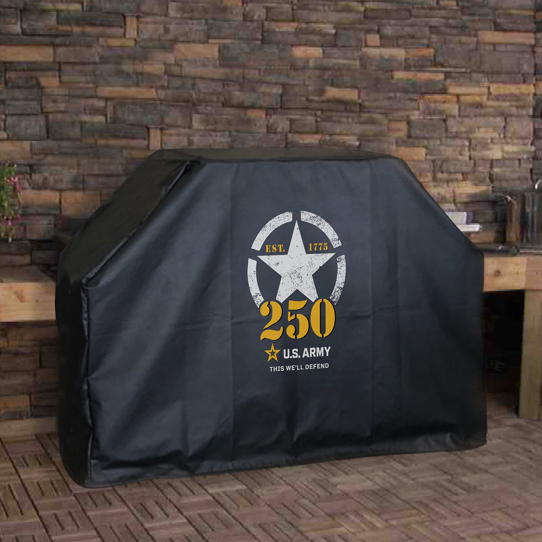 The United States Army 250th Anniversary Grill Cover is a testament to durability, crafted from highly durable, marine-grade vinyl. With its low-maintenance design, it's resistant to UV, water, stains, tears, and abrasions, ensuring your grill remains protected through all conditions. Proudly made in the USA, this grill cover combines rugged functionality with a patriotic touch, making it an excellent choice for Army enthusiasts and grill masters alike!